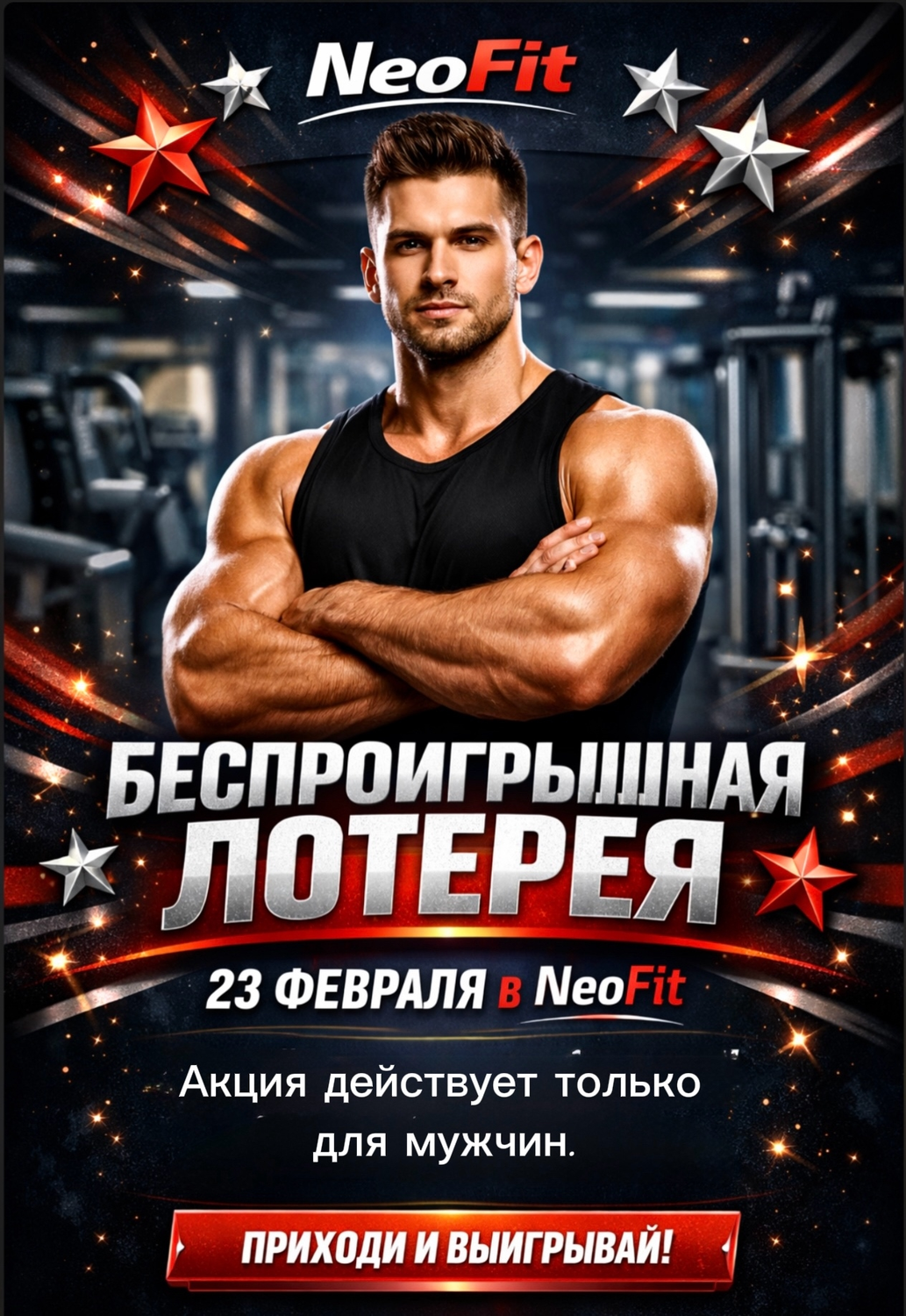 🔥23 ФЕВРАЛЯ - ДЕНЬ СИЛЫ В NeoFit🔥Только один день❗Только для мужчин❗И да — это беспроигрышная лотерея😉Каждый участник получит скидкуВ розыгрыше:- скидки от 5% до 20% как на самостоятельное посещение зала, так и на занятия с тренером👌Хочешь качаться выгоднее?Хочешь начать, но ждал повод?Вот он. И второго не будет.🗓23 февраля⏰Весь день📍NeoFitПриходи. Испытай удачу и збери свою скидку.Прокачай себя по-мужски💪